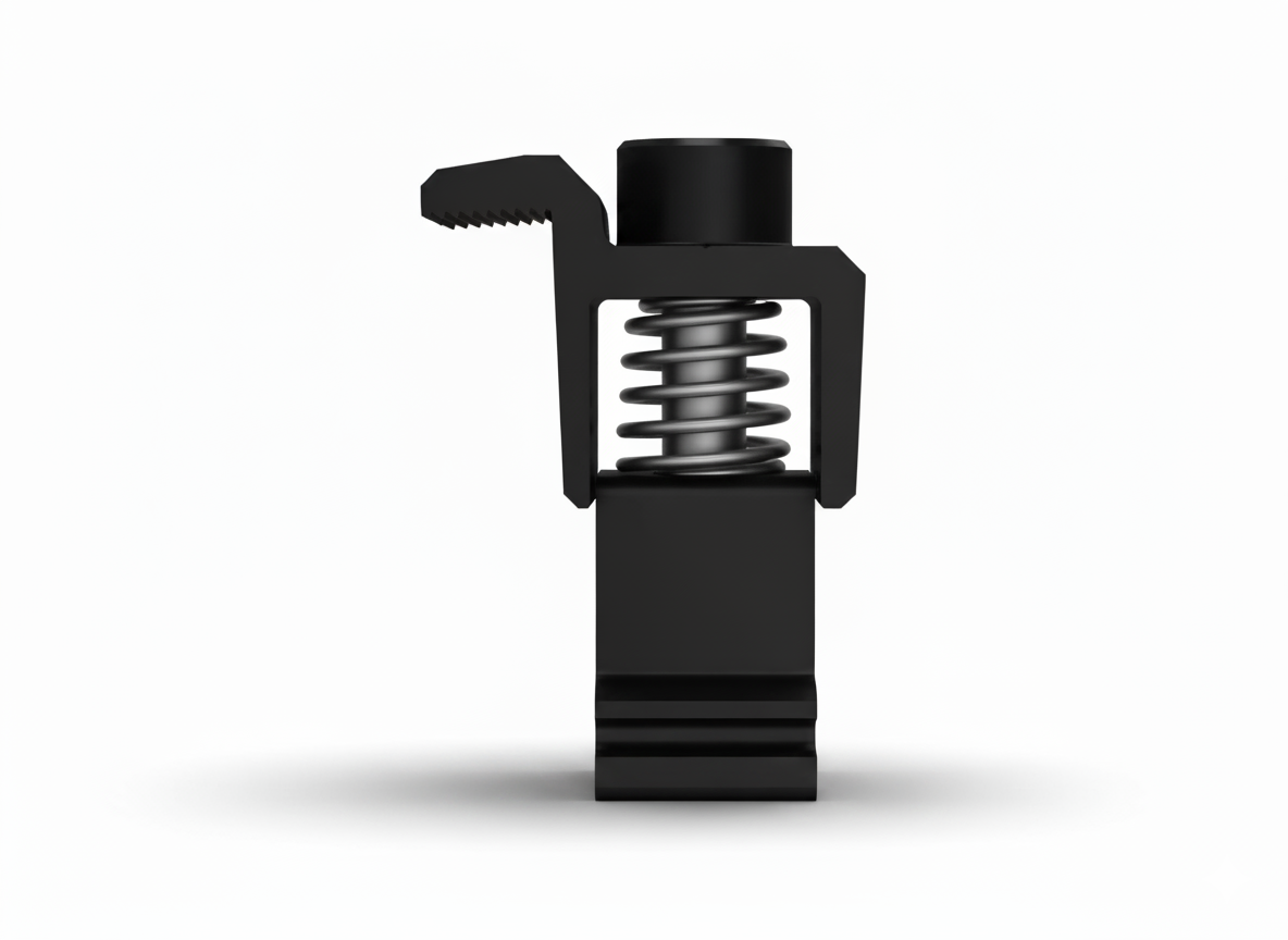 Rugós univerzális végleszorító, 27.5-35 mm vastagságú anyagokhoz, fekete színben.