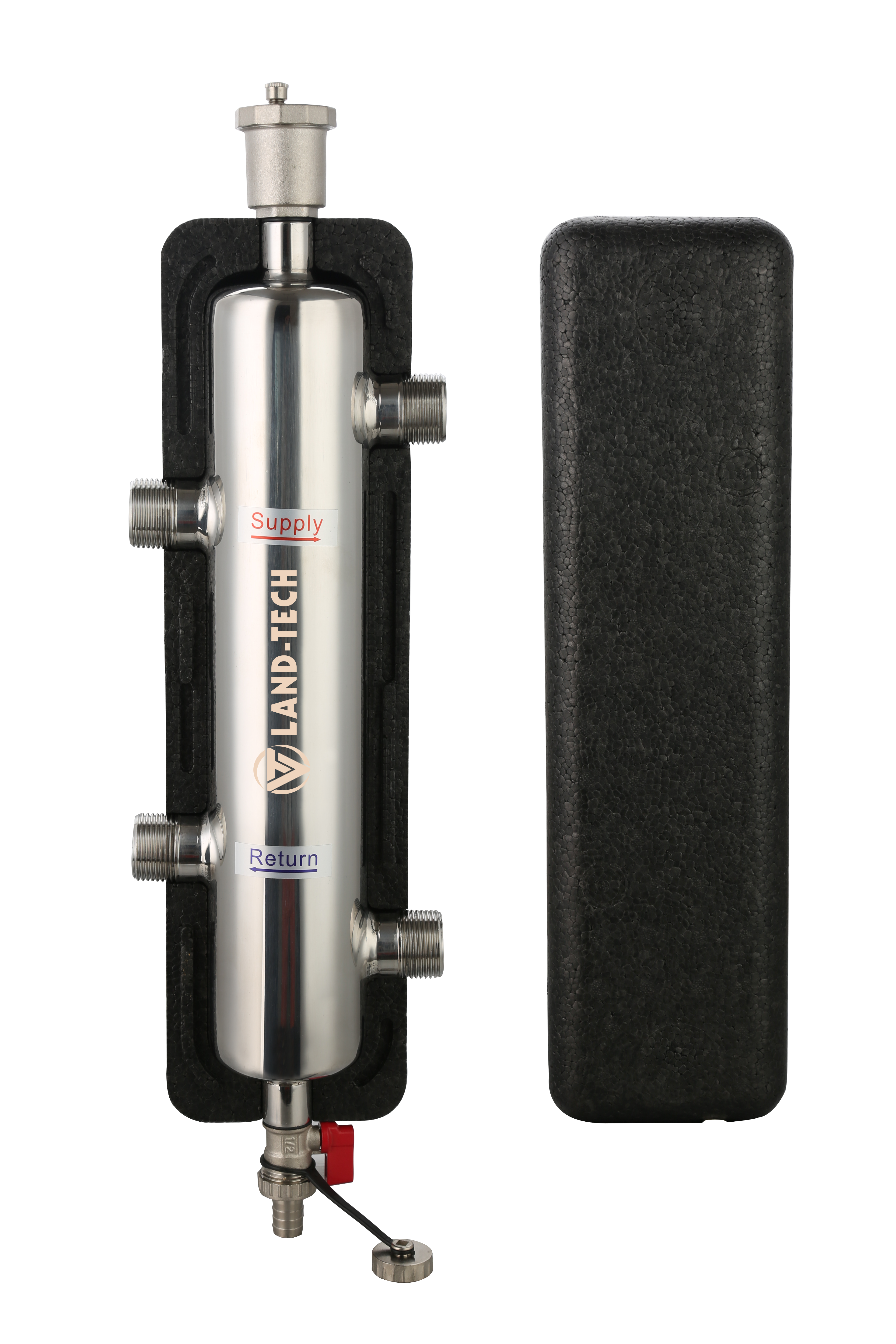 Rozsdamentes hidraulikus váltó 4 csonkkal szigeteléssel